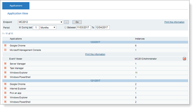 By clicking the Print this information link, you can export the Applications metadata to an external window for easier printing and for usage in Microsoft Excel.