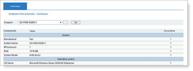 The Inventory View displays a list of the resources (hardware and software) on the specific endpoint. This information is gathered from the endpoint and displayed for your convenience. The information is read-only and cannot be changed.