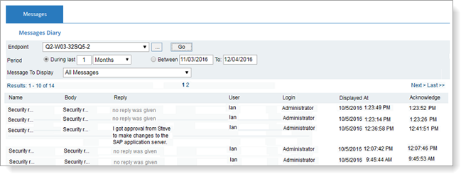 In the Messages Diary of the Endpoint Diary, you can see all the messages that were displayed on an endpoint.