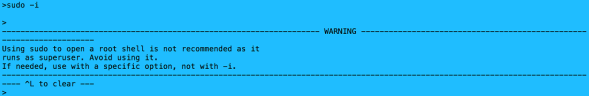 In this example, the user types the command sudo-i to open a root shell in a Unix session. This is a risky activity as executing the sudo command from within a script enables the security privileges of super users.