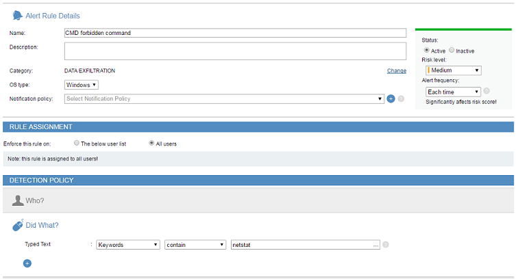 For details on configuring the Typed Text condition, see Used Keyboard (Keylogging) Did What.