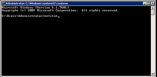 In this example, the user opens a CMD window and types the blacklisted command netstat (a common command line networking utility that provides information and statistics about protocols in use and current TCP/IP network connections).