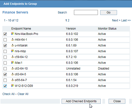 In the Add Endpoints to Group dialog box, select the check boxes of the endpoints you want to assign to the endpoint group.