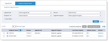 This view lets you see all the endpoints that are installed. By default, you see those that are ready for upgrade. You can filter the view to drill down to see specific endpoints.