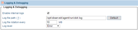 Four log level options can be configured at the policy level to trace Agent activities: error, warning, info, or debug. In earlier versions of ObserveIT, all internal messages and debug information were written to the syslog. The syslog is now used to store only critical system (error log level and above) errors; all other events are written, by default, to the obit.log file, or can be configured at the policy level.