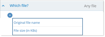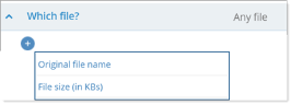 To specify the size of the attached file, select File size (in KBs), select the relevant operator from the drop-down list.