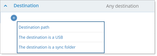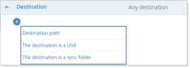 To specify the destination of the file, you can accept the default which is Any destination, or click the downward arrow