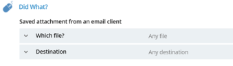 - To specify the path to which the attachment is saved, select Destination path, select the relevant operator from the drop-down list.
