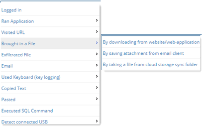 By downloading from a website or Web application: An alert is triggered when a file is downloaded from any website or web-application, including webmail, social media sites and file sharing sites.