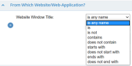 To specify the Website Window Title from which the downloaded file originated, select the relevant operator from the drop-down list and enter part or all of the window title.