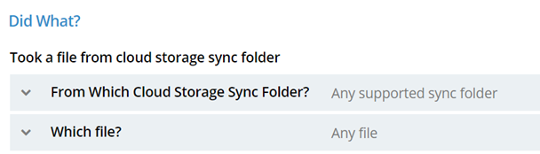 By taking a file from cloud storage sync folder: An alert is triggered when a tracked file is moved or copied from a local cloud storage sync folder, such as Box.