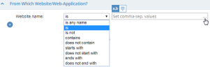 To specify the Website namefrom which the downloaded file originated, select the relevant operator from the drop-down list and (unless you selected is any name) enter the required website name(s).