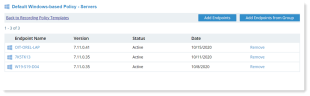 To see the endpoints linked to a Recording Policy template, click Linked Endpoint in the Recording Policy Template page. From here you can add, remove and review the endpoints for the recording policy.