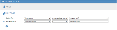Following is an example of a rule that will trigger an alert when confidential text such as a project name "voyager or VYG" is copied to the clipboard while Microsoft Word is running: