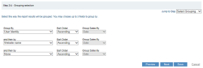 Specify how the information you want is to be grouped (Step 2/4 Grouping selection). In addition, specify sort order (ascending / descending).
