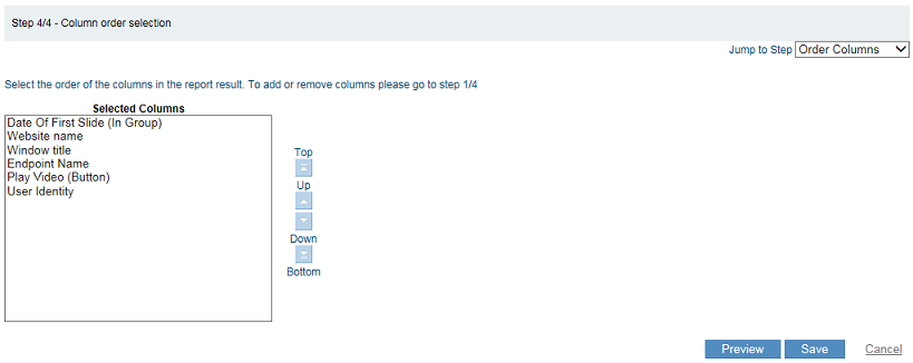 - Click the Top, Bottom, Up, Down buttons, to choose the order of the columns and configure the appearance of the report. The list contains the same columns that were selected in Step 1.