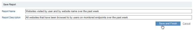 Grouping options depend on the type of report. For example, Endpoint reports can be grouped by server, session, or user elements.