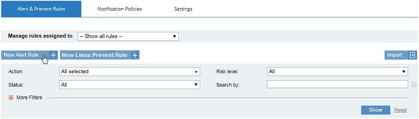 - In the Alert & Prevent Rules tab, click the New Alert Rule button.