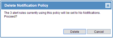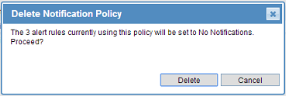 A dialog box opens, warning you about any alert rules that are currently using this policy.