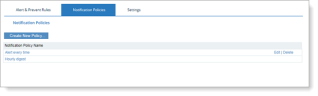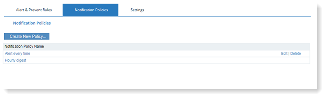 Navigate to Configuration > Alerts > Alert & Prevent Rules > Notification Policies.