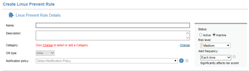 The Create Linux Prevent Rule page opens in which you can define the required details of the Linux prevent rule.