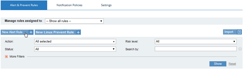 In the Alert & Prevent Rules tab, click the New Alert Rule button.
