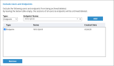 In the Exclude Users and Endpoints section, select the users/endpoints whose sessions you don't want to delete. These users/endpoints will not be deleted until you remove them from the list. (Removal will take effect at the next scheduled archive/delete job.) To remove, select the user/endpoint and click Remove.)