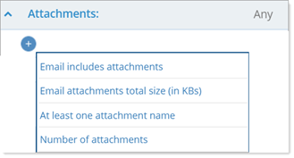 - Number of attachments: Trigger by the minimum/maximum number of attachments. to the email.