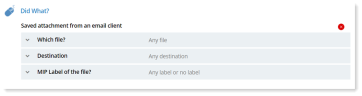 - Saved via an email client: Trigger an alert when a file was originally saved from and email client
