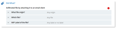 To specify the filename after it is attached to the email, select Exfiltrated File Name, select the relevant operator from the drop-down list.