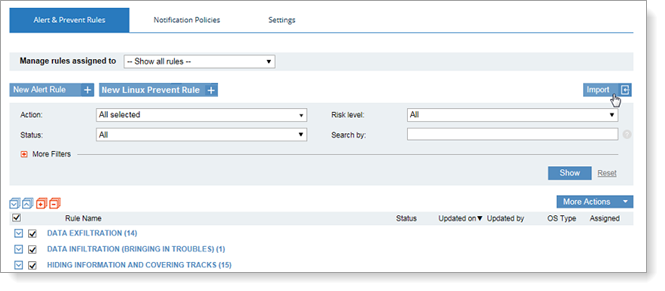 The Alert & Prevent Rules page will be refreshed to display the newly imported rules.