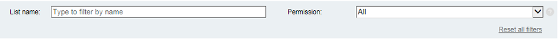 From the Permission list, select the permission for the list(s) that you want to view. Options are: All (both Public and Private), Public, or Private.