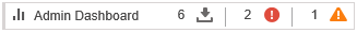 The colored icons on the mini Admin Dashboard indicate data from the past 7 days, including when relevant, the number of: