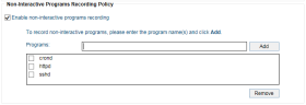 In the Programs field, enter the name of a non-interactive program that you want to include in your recording policy. Click the Add button.