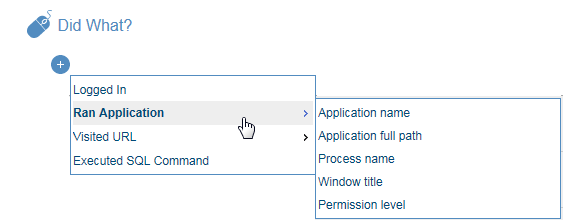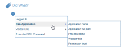The Ran Application options enable you to generate an alert when a user runs one or more particular applications on a Windows computer. Running certain applications may signal, for example, that the user may be tampering with settings that may affect system security, user permissions, installed software/services, or accessing sensitive data.