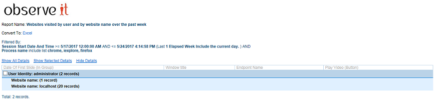 - Click Show All Details to view the details of all the items in the report, as shown in the example below.