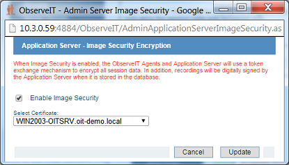 - Note: Enabling image security might slightly impact CPU load on the Application Servers.