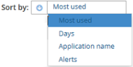 You can sort by the default option Most used, or click in the text box to open a list of other options by which you can sort the applications list:
