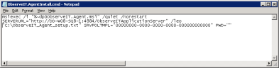 - Run the sample batch file called ObserveIT.AgentInstall.cmd which is included in the ObserveITAgent setup directory.