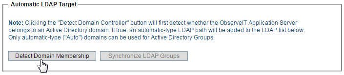 From the LDAP Settings tab, in the Automatic LDAP Target area, select Detect Domain Membership.