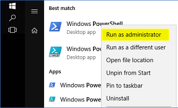 - Start Windows PowerShell in Elevated mode, by right-clicking the PowerShell icon and choosing Run as administrator.