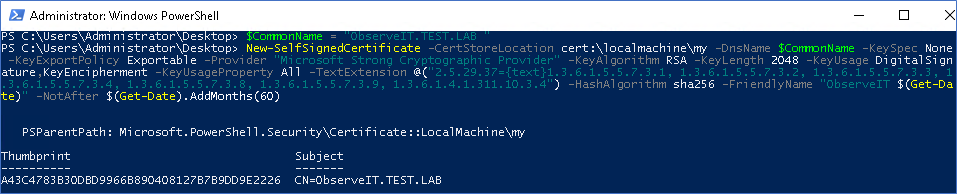 - Run the script. For example: PS C:\Users\Administrator\Desktop> .\New-SelfSignedCertificateEx.ps1.
