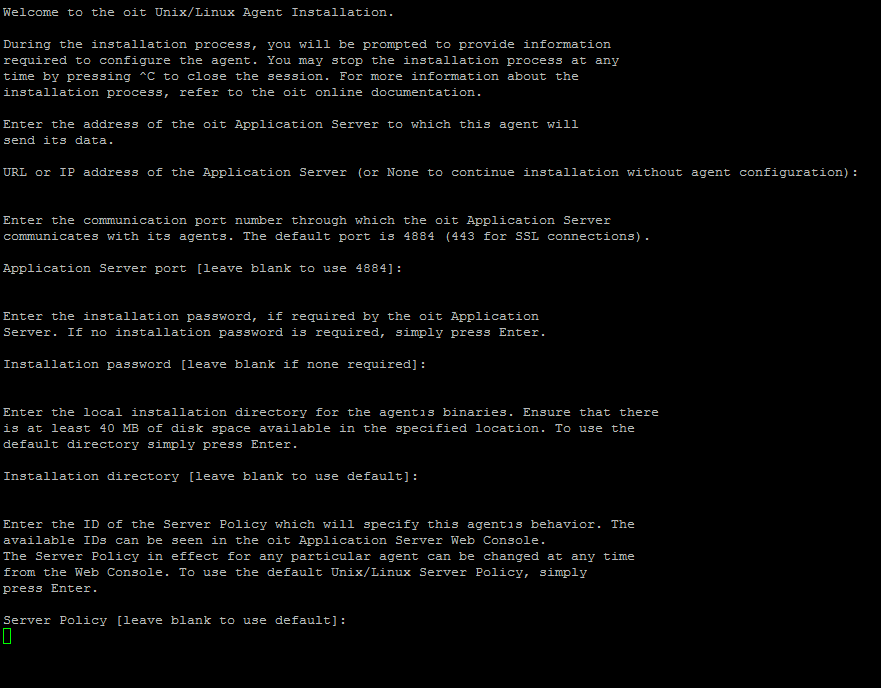 Welcome to the ObserveIT Unix/Linux Agent Installation.