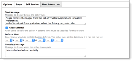 For macOS Sierra and higher, it is recommended that you define a message prior to uninstallation to allow the user to clear the logger from the list of Trusted Applications.