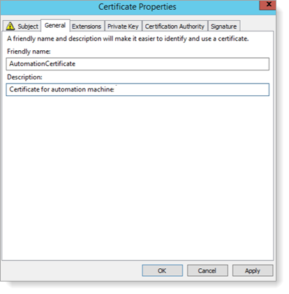 The Certificate Properties dialog box opens. Locate the certificate you want and click More information is required to enroll this certificate. Click here to configure settings to open the Certificate Properties.