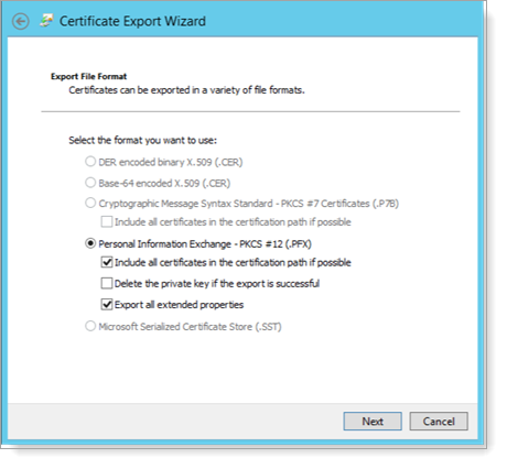 The Certificate Export Wizard opens. Click Next.