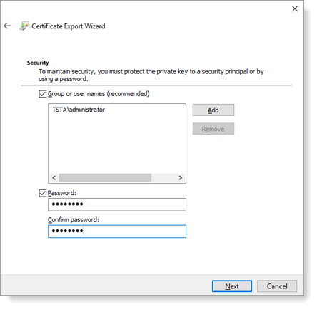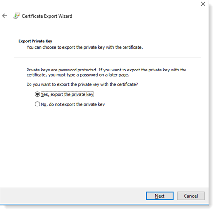 Select Yes, export private key. Click Next.
