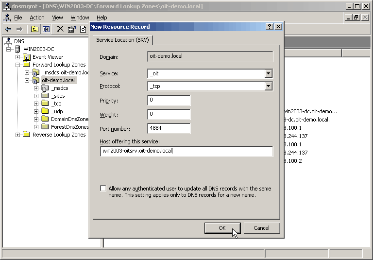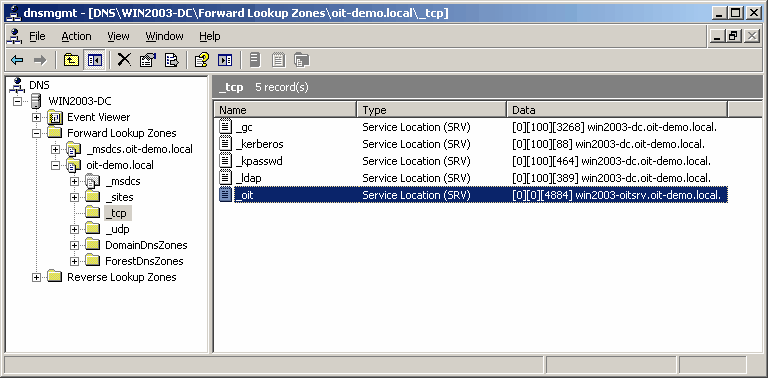 _oit._tcp.oit-demo.local SRV service location: