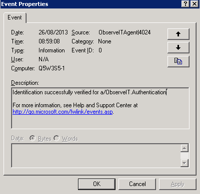 Events that are generated by the ITM On-Prem (ObserveIT) Agent can be viewed in the Windows Event Viewer. Events are classified by type. For example, an Information event describes the successful completion of a task, such as installing an application.
