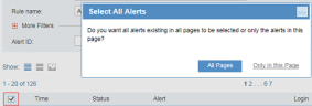 A Select All Alerts pops up asks if your selection applies only to the current Alerts page or to all pages.